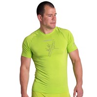 Pánské triko s krátkým rukávem E NKR je vyrobené z vlákna získaného z přírodního bambusu. Díky tomu je materiál mimořádně příjemný na dotek a má přirozené antibakteriální vlastnosti. Bambusové vlákno také zajišťuje optimální termoregulaci, v létě chladí, v zimě hřeje. Triko má anatomický střih a ploché švy pro komfortní pocit při nošení.