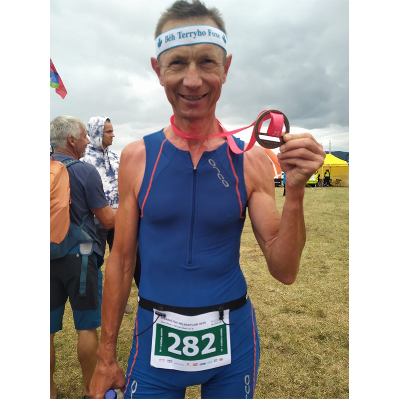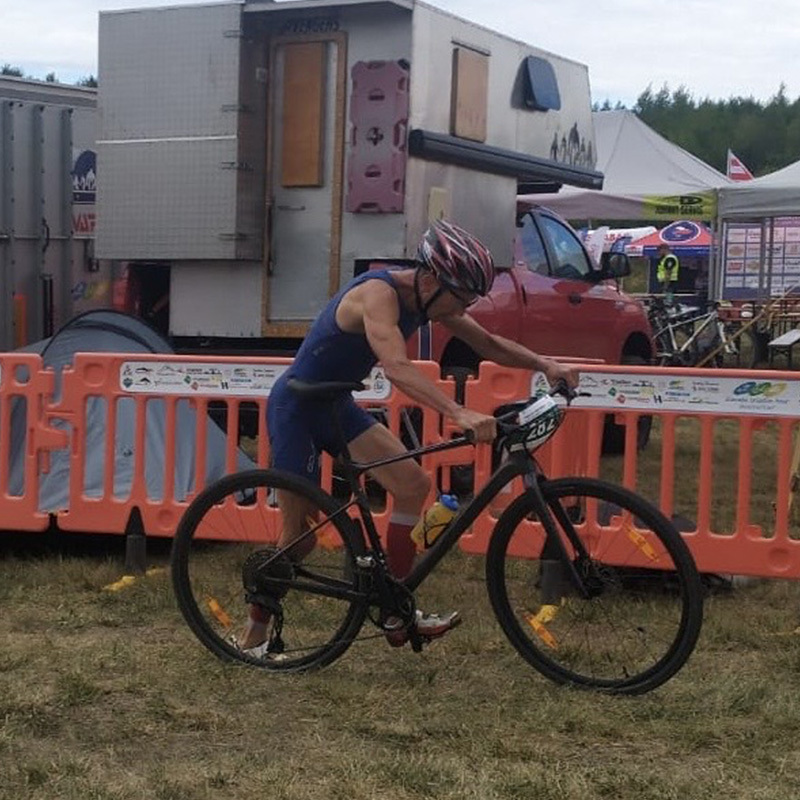 Po dovolené v Českém ráji jsem si dal po pěti letech Miladatlon (0,5-28-6 km). Hodně foukalo, a tak byly vlny skoro jako na Havaji. Občas nebylo ani bóje vidět, a to byly metr vysoké! Na kolo jsem si vzal gravela s rovnými řídítky. Jezdím na něm do práce. Trať se dala bez problémů na 40 mm pláštích projet. Jely se dva 14 km okruhy. Od začátku jsem za to bral hodně zostra. Pod kopec se za mnou vyvezl Marek Bušek a pomalu se vzdaloval. Věřil jsem, že na rovinatých úsecích kolem Milady ho sjedu.