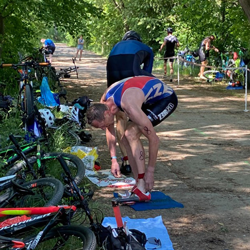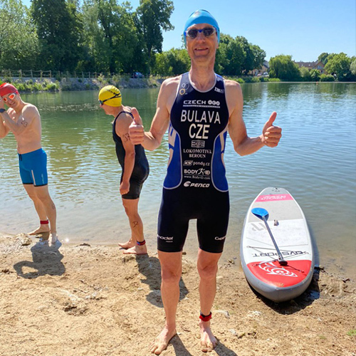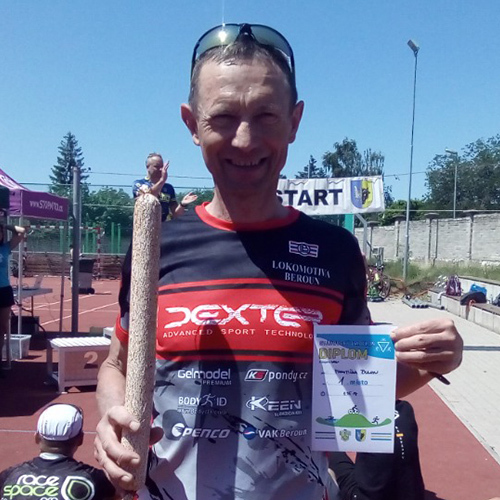 Pocity v běhu byly děsné! Levá kyčel vůbec neposlouchala a celá nohy byla jak z půjčovny protéz. Jirka a Martin mě předběhli a začali se vzdalovat. Já jen běžel a čekal kdy se mi začne běžet lépe. Do kopce to šlo ale v klesáních a po rovině jsem trpěl jako zvíře. Za půlkou se to jakž takž zlepšilo a já byl rád, že jsem si na kole vypracoval na pronásledovatele velký náskok a v závěru nemusel zrychlovat. Stejně bych to nedokázal. Celkově jsem doběhl na 5. místě a ve svoji kategorii 46+ jsem doběhl k mému překvapení na prvním místě. Velmi mě potěšil třetí nejlepší čas na kole. To jsem fakt nečekal. S Pavlem Jindrou jsme si po závodě vyjeli na kole a na doplnění tekutin jsem si dal dvě pivka. Rád jsem po dlouhé době nasál závodní atmosféru a potkal se s kamarády a kamarádkami. Doufám, že letos ještě nějaký závod přidám. Buďte všichni zdrávi!
