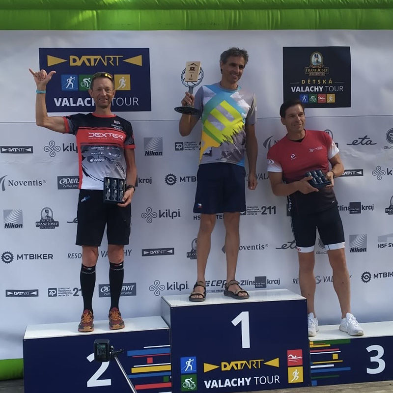 Z depa jsme vybíhali s Lukášem a přidal se i Marek Ščerba. Asi po 300 m do kopce nás povzbudil Michal Piloušek. Lukáš opakovaně nasazoval a sundával přes hlavu gumu s číslem. Možná si diváci na zahrádce bistra mysleli, že ho chce sníst😀. Bohužel jim takovou radost neudělal, a mě vlastně také ne. Prostě ho chtěl mít jen správně viditelné. S Markem se mi začali vzdalovat, i když jsem doloval ze sebe poslední zbytky sil, aby se tomu tak nestalo. Na vrcholu stoupání jsem se jim přiblížil asi na 20 m. V seběhu se mi bohužel ztratili z očí, a tak jsem druhý okruh většinou běžel sám. Asi 1 km před cílem jsem zjistil, že se někdo ke mně blíží, a tak jsem dřel jako kůň, aby mě nedoběhl. Když jsem seběhl pod hráz přehrady Bystřička byl jsem totálně prošitý a věděl jsem, že to bude už jen do kopce. Za žádnou cenu jsem se nechtěl nechat seběhnout, a tak jsem šel úplně "přes závit". Vracečka do cíle mi ukázala, že by to mohlo i vyjít, ale běžel jsem "full gass". Povedlo se a finišoval jsem za bujarého komentování Standy Bartůška celkově na 30. místě a pěkném 2.místě v M55-59. No byla to pořádná tříhodinová dřina v blátě a dešti a uznání zaslouží každý kdo doběhl do cíle.