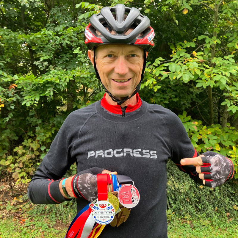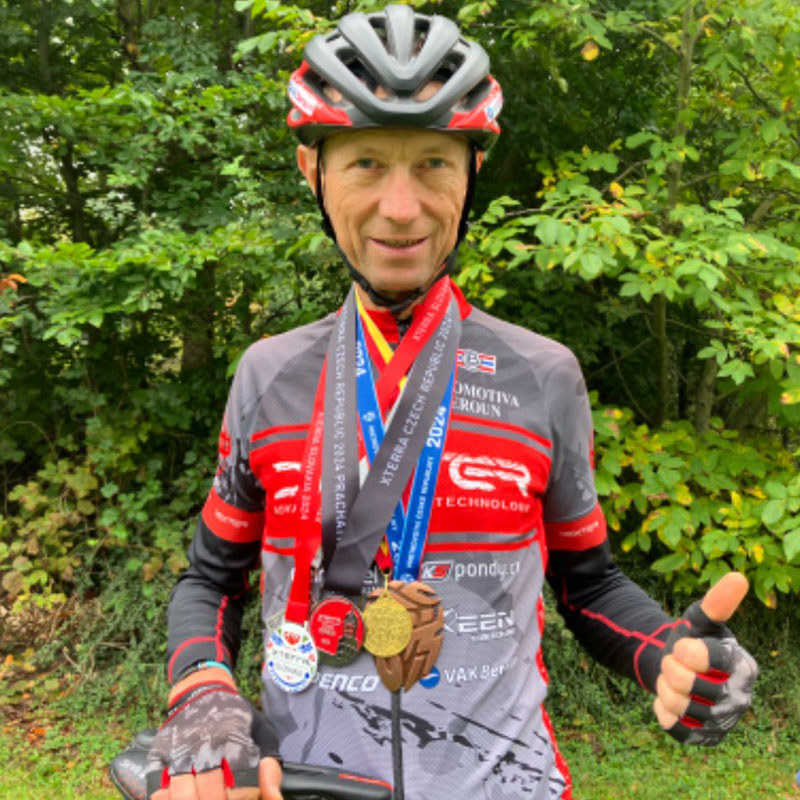 V celkové hodnocení Českého poháru v terénním triatlonu jsem v kat. 50-59 let vybojoval pěkné 2. místo. Letošní sezonu hodnotím i navzdory potížím s ramenem jako velmi zdařilou. Absolvoval jsem ji na novém celoodpruženém kole Trek Supercaliber a musím přiznat, že mě to posunulo i v mých 58 letech kupředu. Po sesednutí z kola nejsem tak vytřesený a do běhu jdu míň unavený.