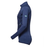 Dámská hybridní bunda KORA LADY je vyrobena z kombinace dvou materiálů. Rukávy a zadní díl jsou vyrobeny z pružného hřejivého materiálu, který zaručuje maximální pohodlí a neomezený pohyb. Přední díl tvoří zateplený prolepovaný díl plněný značkovou výplní 3M™ Thinsulate™. Jde o velmi lehké izolační mikrovlákno, které dokáže efektivně udržet tělesné teplo a přitom odvádět přebytečnou vlhkost a díky tomu zajišťuje vynikající termoizolační vlastnosti. Střih neomezuje v pohybu, materiál je lehký a příjemný, zároveň poskytuje optimální termoizolační vlastnosti. Hybridní bundu můžete využít jako druhou nebo třetí vrstvu. Pokud ji použijete jako mikinu, skvěle vás zahřeje v mrazivých dnech. V jarním a podzimním období vám přijde vhod jako lehčí, ale zároveň hřejivá vrchní vrstva. Bunda má dvě boční kapsy na zip. Díky svému elegantnímu designu, pohodlnému střihu a výborným termoizolačním vlastnostem je ideální pro nejrůznější sportovní aktivity za chladného počasí.