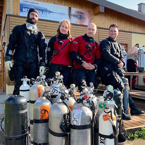 Druhý den se ohlásil vedrem, které by nám mohli závidět i v přímořských státech. Představa, že se pod pražícím sluncem soukáme do výstroje byla poněkud znepokojivá, přesto jsme se odhodlali vyrazit. Trochu jsem si poplakala při foukání lahví, kombinace Trimixu (směs hélia, kyslíku a dusíku), čistého kyslíku a Nitroxu (směs kyslíku a dusíku) dala mé peněžence zabrat. Na ponor do 50 m jsem se však těšila a nelitovala investovaných peněz do směsí, které ponor udělají bezpečný. Štěstí nám přálo a našli jsme si místo ve stínu, kde jsme se mohli nerušeně navléct do všech vrstev a naplánovat ponor. Poté už nic nebránilo tomu, vyrazit vstříc zážitkům pod vodní hladinu.