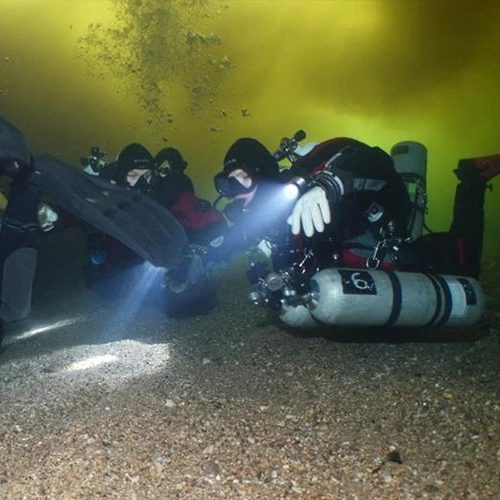 Druhý ponor v Resselu vyžadoval poněkud pečlivější a delší plánování. Chystali jsme se nejen na hlubší, ale i celkově delší a náročnější potápění. Všichni jsme si oblékli týmová trička od Progress Sportswear, které nám vyrobili přesně podle našich přání a vyrazili k řece. V nadšeném očekávání jsme nastrojili všech 5 lahví (dvojče a 3 stage) a začali vše nosit k vodě. Poté, co jsem nesla poslední lahev jsem se cítila na pokraji infarktu. Teplota se šplhala ke 35 stupňům a já se koupala dříve, než jsem vkročila do vody. Francouzský potápěč na břehu můj vzhled okomentoval slovy: "Life is hard, girl" a poté si se smíchem a lehkostí hodil vlastní lahve na rameno a chůzí (i vzhledem) modela se vydal ke svému autu. AU....
