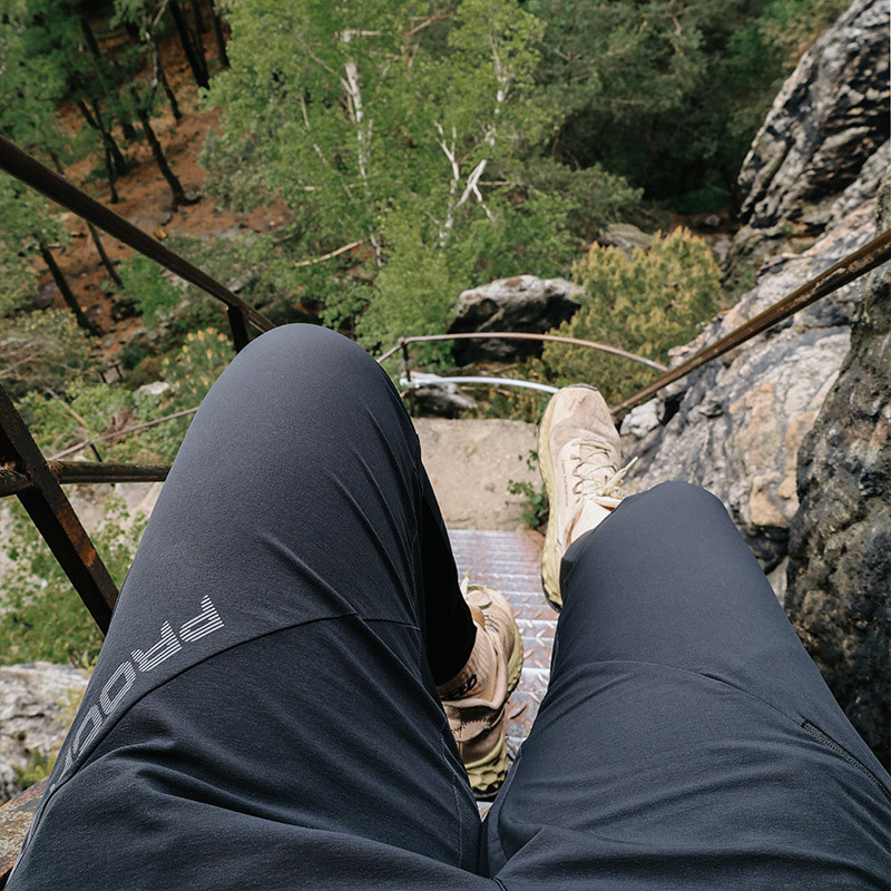 A co je to, co mi na tomhle kousku oblečení tak moc sedlo? Střih! Nenajdete moc outdoorových kalhot, které by nebyly rovně střižené. Tím, že je spodní část těchto kalhot pod koleny a v oblasti lýtek vyrobena z pružného elastického materiálu, jsou zúžené a navozují pocit, že na sobě máte legíny. Vrchní část je naopak vyrobena z lehkého rychleschnoucího materiálu, který je navíc odolný proti větru. A tu odolnost proti větru mohu tedy stoprocentně potvrdit. V kalhotách nebloudím jen svým oblíbeným Českým rájem, ale oblékla jsem je několikrát i na svých cestách v Jeseníkách anebo třeba v Žitavských horách. I horský vítr zvládají v pohodě.
