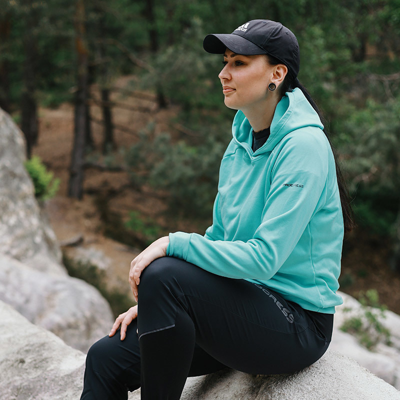 Osobně mám moc ráda mikiny s kapucí, takže Biddy pro mě byla v tomhle ohledu jasná volba. Co mě ale hodně potěšilo je to, že když se do mikiny obléknete, máte pocit, že jste se zachumlali do nějaké huňaté deky. Díky tomu je tenhle kousek vhodný samozřejmě do přírody, ale i na běžné denní nošení. Fascinuje mě, že přesto, jak je mikina hřejivá je velmi tenká a lehká.